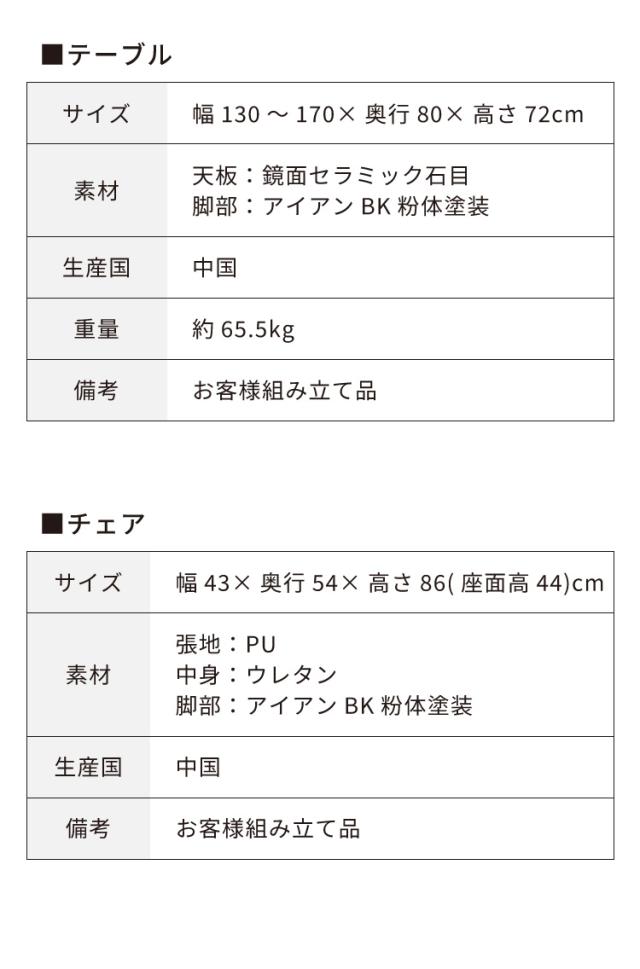 テーブル:幅130〜170cm×奥行80cm×高さ72cm