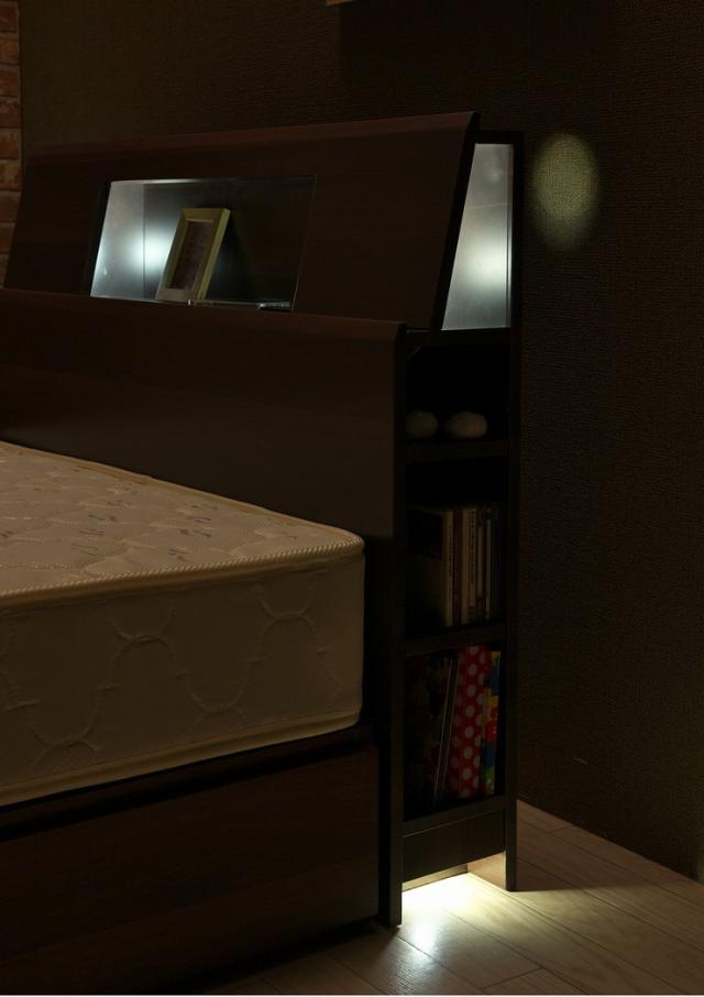 | ベッドフレーム 【ヘッドライト/足元ライト/コンセント/収納棚付】 | ||