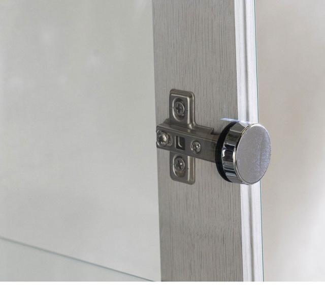 強化ガラスの透明感: 棚板と扉には強化ガラスを採用。高い安全性と、視界を遮らないクリアな視認性を両立しています 。