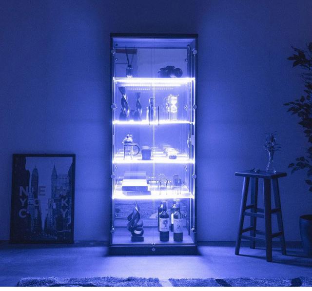 大切なコレクションをただ並べるだけではもったいない。このLED付きラックは、棚板の奥まで光を届ける高演色LEDを採用。フィギュアの造形美や、グラスの透明感を最大限に引き出します。
