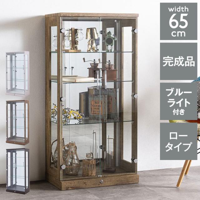 オリーブ65ロータイプ コレクションラック 横型ブルーライト付タイプ 完成品 幅64cm 高さ129cm 奥行33cm フィギュア コレクションケース ガラスケース ショーケース コレクションボード ガラス棚(代引不可)【送料無料】