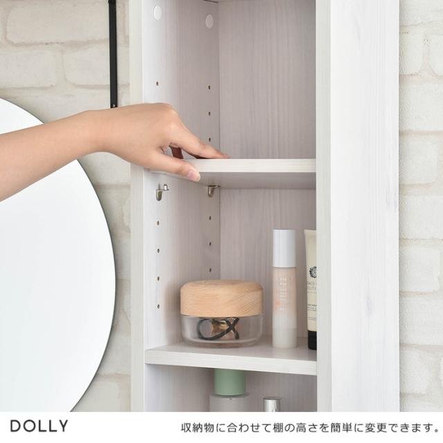よく使う小物の収納に最適なオープン棚収納、ドライヤーや細々した物もたっぷりしまえる引出し収納、高さのある物も収まるガラス扉収納を使い分けられます。