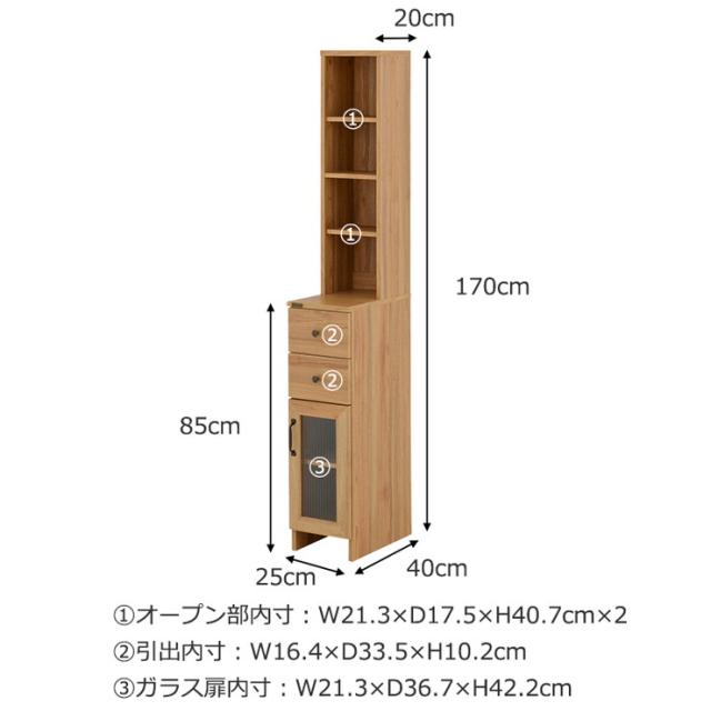 [本体]プリント紙化粧繊維板、中段天板:合成樹脂化粧繊維板、扉ガラス部:4mm厚波ガラス