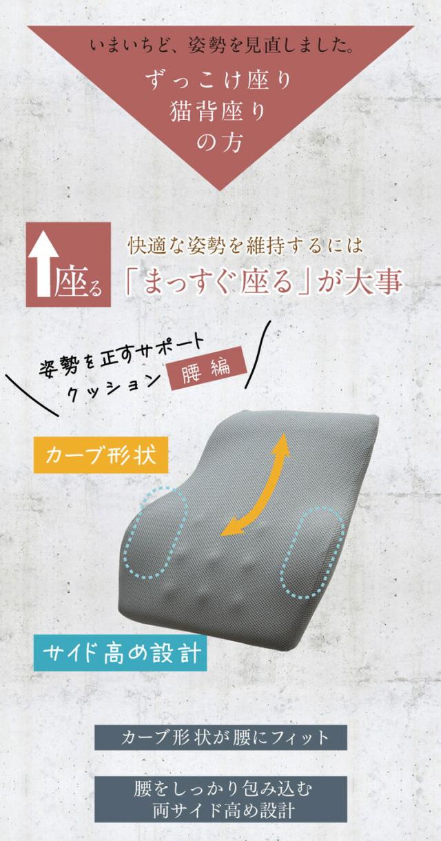 整体院の先生監修 快適支座 腰編 クッション 腰 姿勢を正す サポートクッション 46×38cm 姿勢見直し 負担軽減 理想な座姿勢 ウレタンフォーム ずっこけ座り 猫背座り 改善 体圧分散 まっすぐ