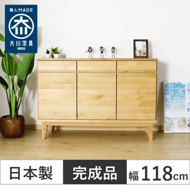 【国産 大川家具 完成品】 サイドボード 幅118cm 木目 木製 テレビ台 テレビボード おしゃれ 収納 モダン(代引不可)【送料無料】