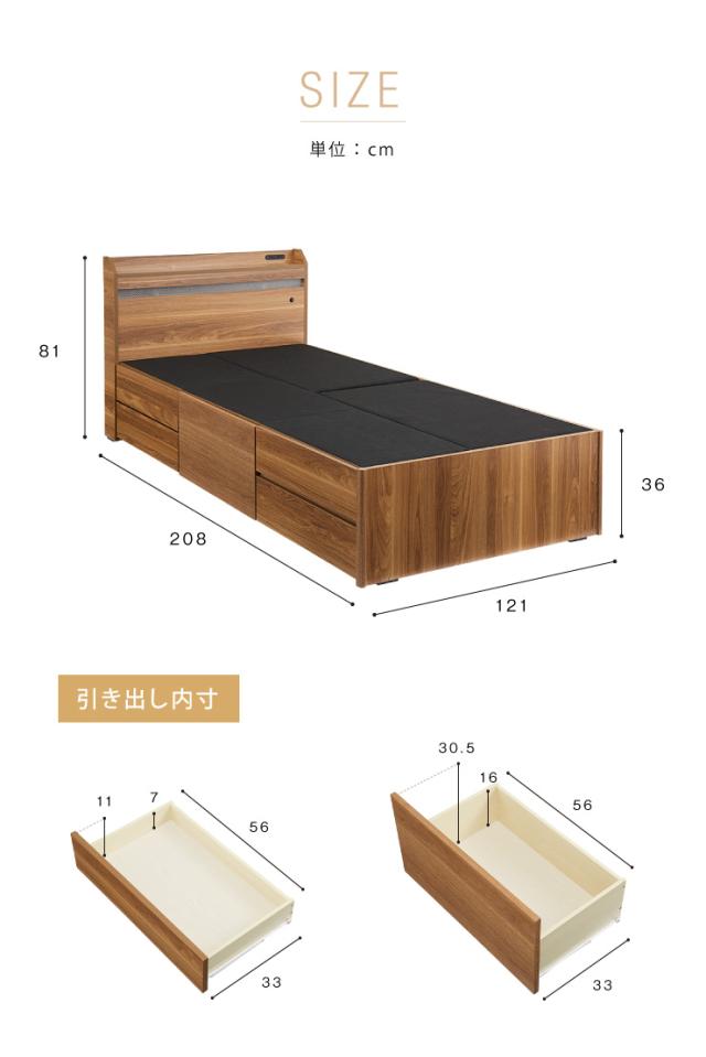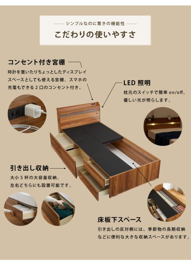 チェストベッド セミダブル フレームのみ ベッド 収納ベッド 一人暮らし 収納 引き出し 大容量 宮付き 宮棚 コンセント付 照明付き(代引不可)【送料無料】