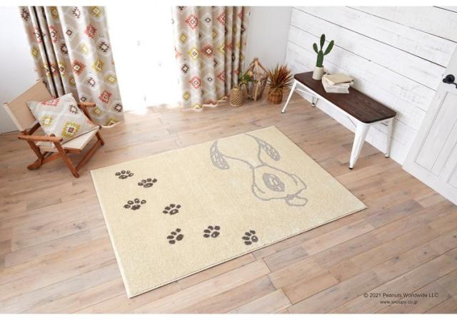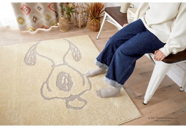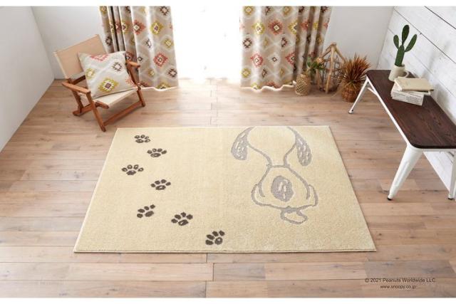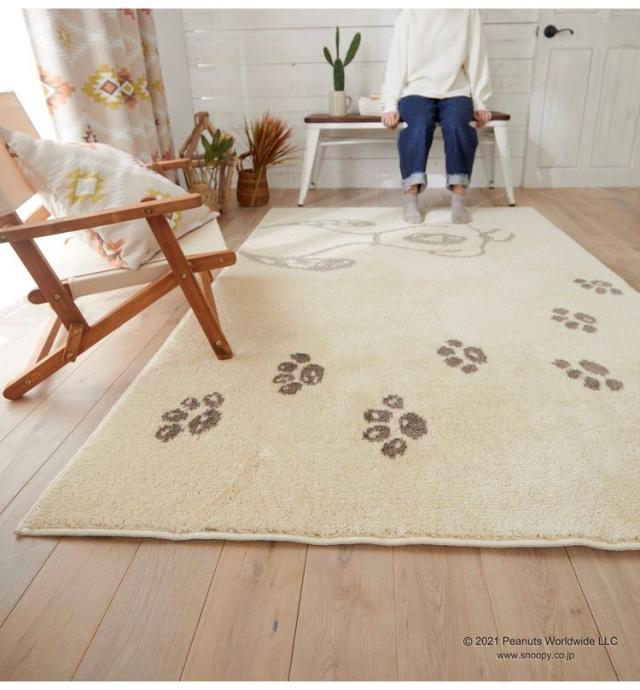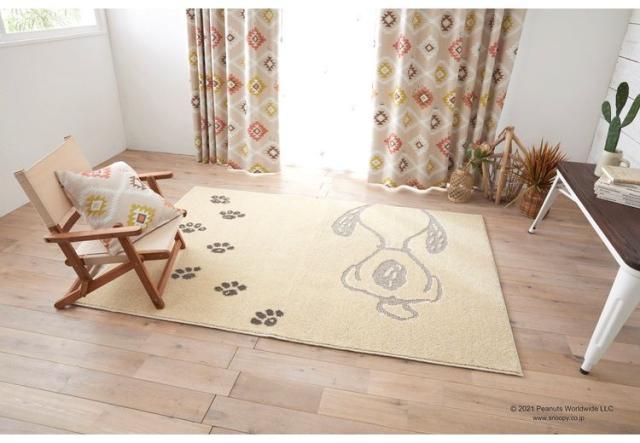 PEANUTS ラグ 130×185cm ボウプリントラグ スヌーピー SNOOPY ピーナッツ 防ダニ 床暖房 ホットカーペット対応 キャラクター 北欧 かわいい 可愛い おしゃれ(代引不可)【送料無料】
