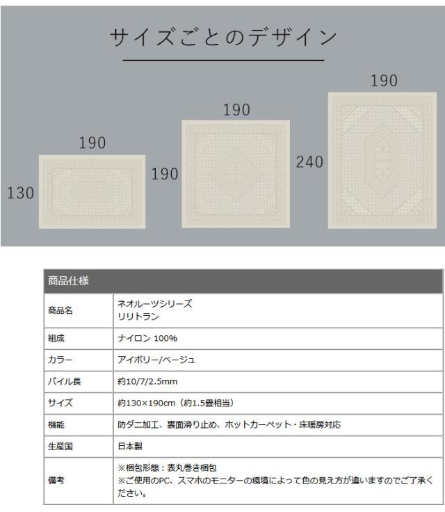 日本製 ラグマット 130×190cm Lilitran リリトラン 長方形 カーペット 防ダニ すべり止め スミノエ 北欧 モダン おしゃれ(代引不可)【送