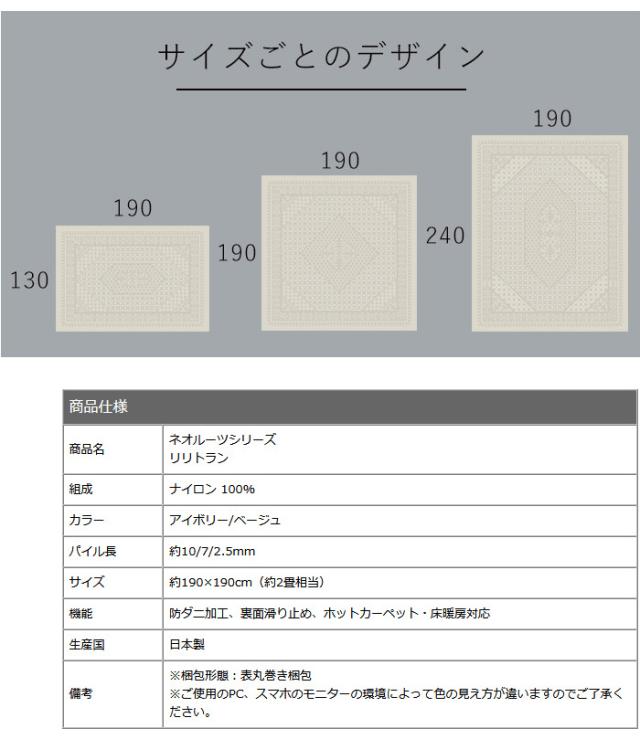 日本製 ラグマット 190×190cm Lilitran リリトラン 正方形 カーペット 防ダニ すべり止め スミノエ 北欧 モダン おしゃれ(代引不可)【送