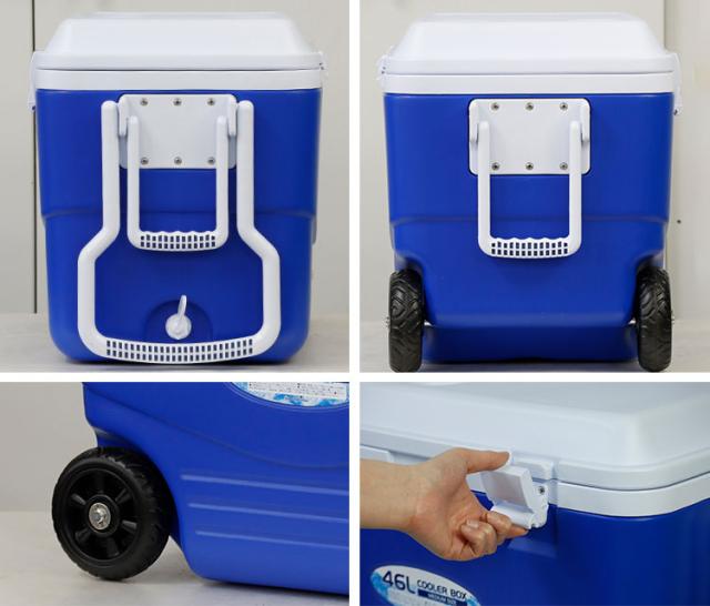 クーラーボックス 46L 大容量 ハンドキャリー付き 排水口 キャンプ アウトドア クーラーバッグ お出かけ 飲み物 保冷(代引不可)【送料無料】