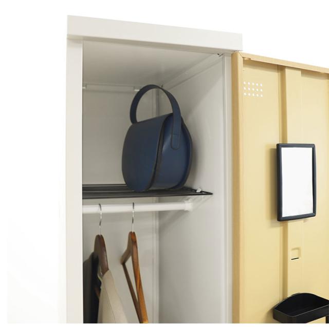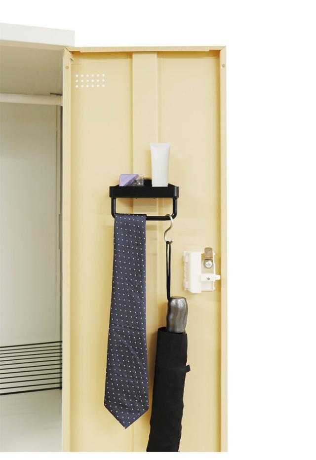 小物入れ、ネクタイ掛け、ネームカード入れと付属品も充実したハイパフォーマンスなロッカーです。