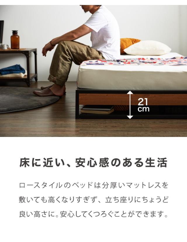 ・木目調とスチールフレームがおしゃれなベッドフレーム