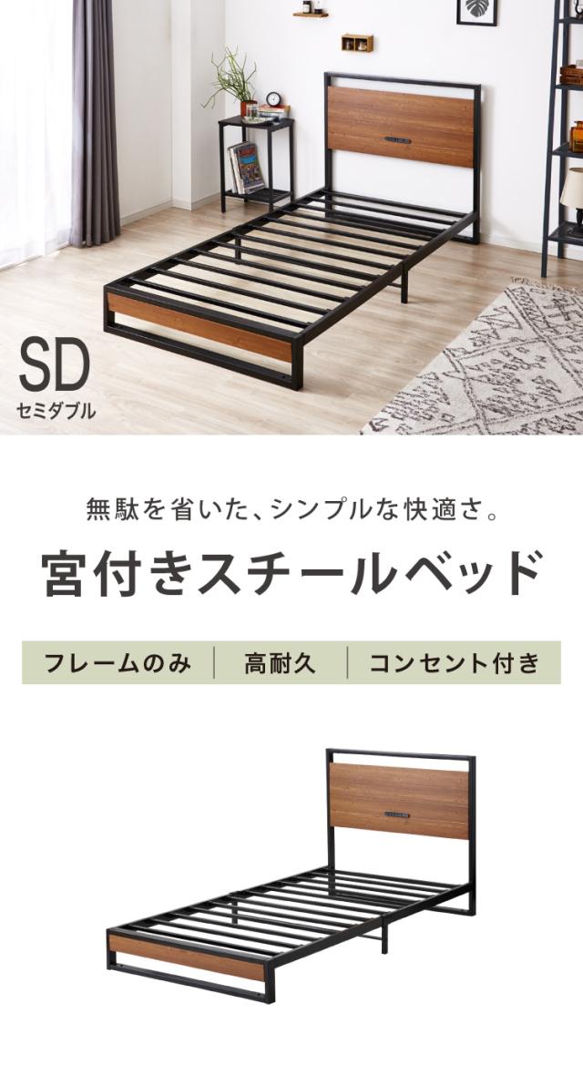 宮付きスチールベッド セミダブル フレーム単品 コンセント付き シンプル 一人暮らし 頑丈 省スペース スリム パイプベッド ベッド スチール パイプ ワンルーム コンパクト フレームのみ【送料無料】