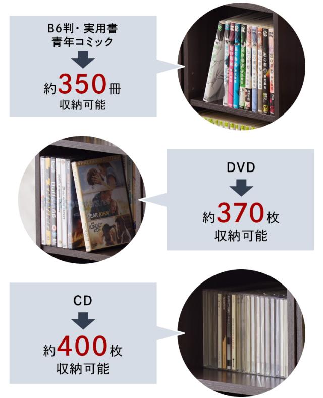 奥深タイプなので、大判コミック本やDVDもたっぷり収納できます。