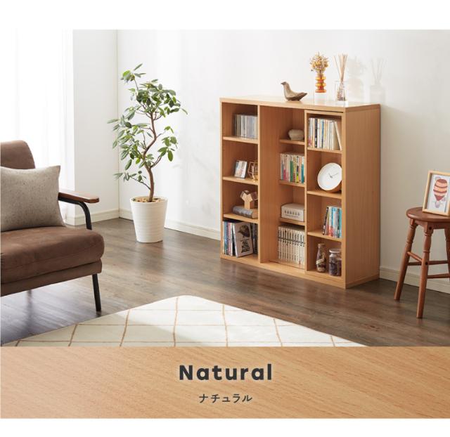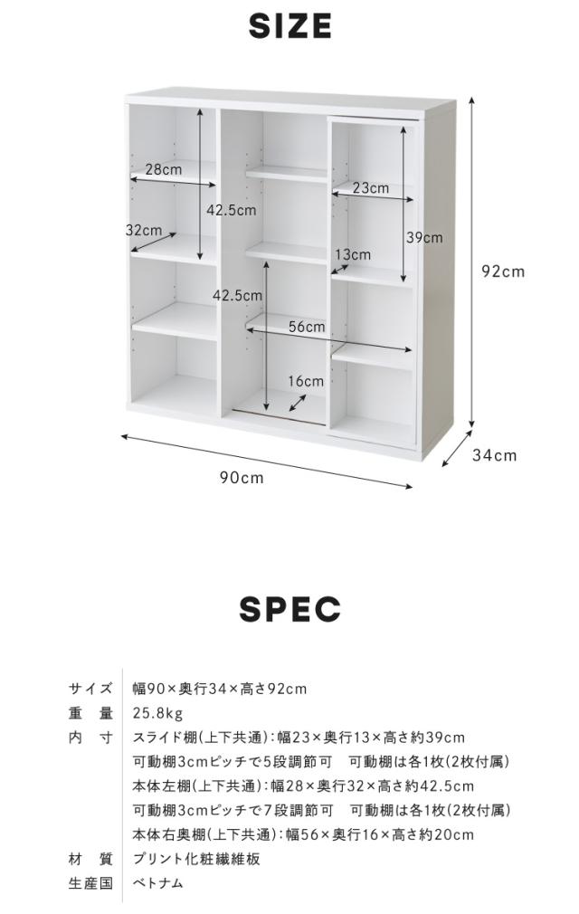 スライド棚、左棚にはそれぞれ可動棚板があり、上下に微調整して本の高さに合わせることができます。