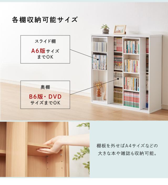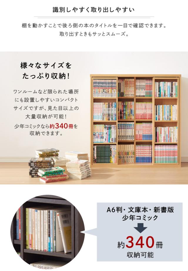 本棚 書棚 スライド式 幅90 ダブル 4段 木製 コミックラック 漫画 書籍 収納 大容量 ブックシェルフ 木目 おしゃれ ブックラック 書斎棚【送料無料】