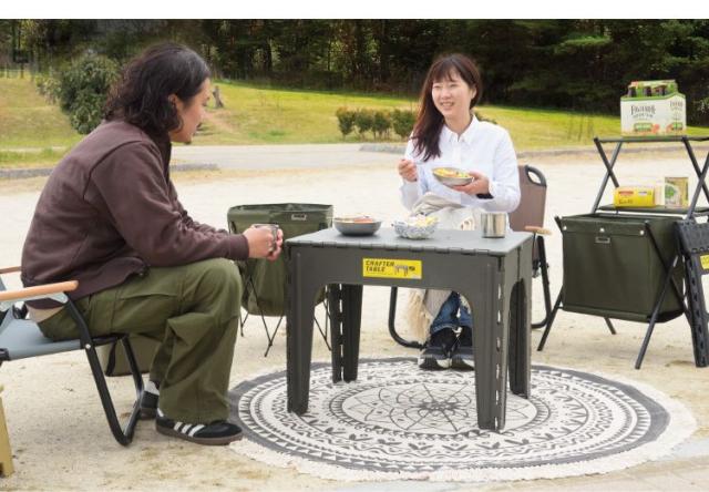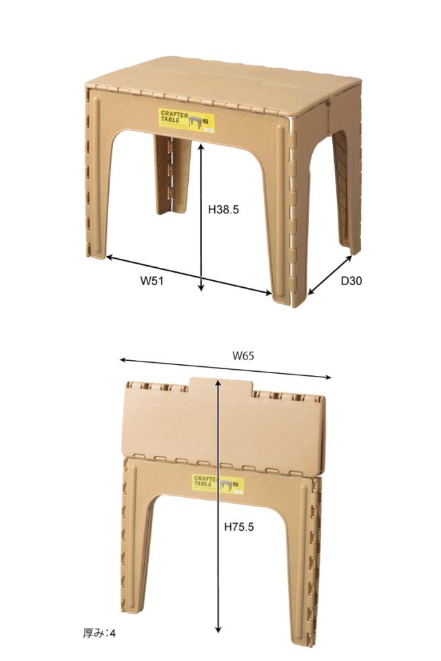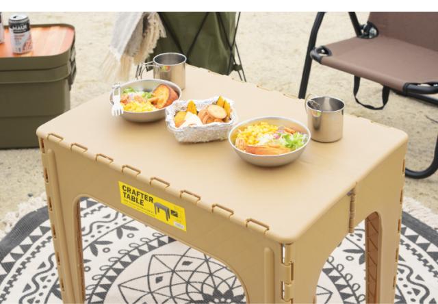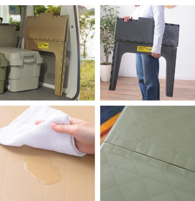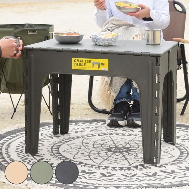 クラフターテーブル、机、折りたたみテーブル、フォールディングテーブル、スクエア、四角、アウトドア、屋外、野外、キャンプ、BBQ、ポリプロピレン、持ち運び、コンパクト、サンドベージュ、グリーン、カーキ、ブラック
