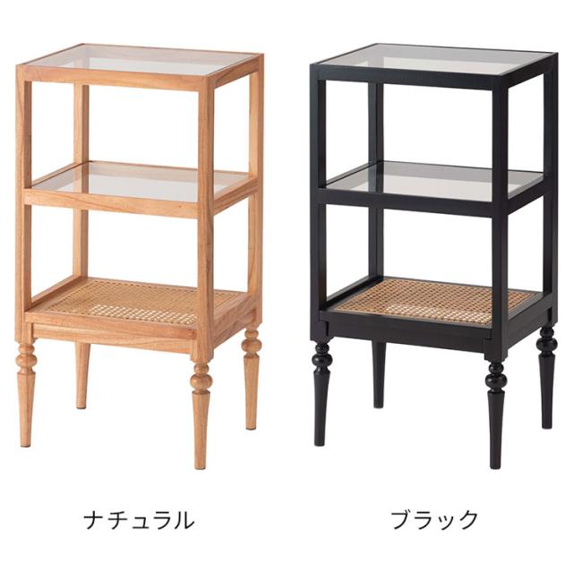 オープンシェルフ PM-512 東谷 収納 棚 シェルフ オープンシェルフ オープン収納 3段 三段 見せる収納 魅せる収納 木製 天然木 ミンディ ラタン 籐 幅40cm 高さ75cm ガラス クリア 透明(代引不可)