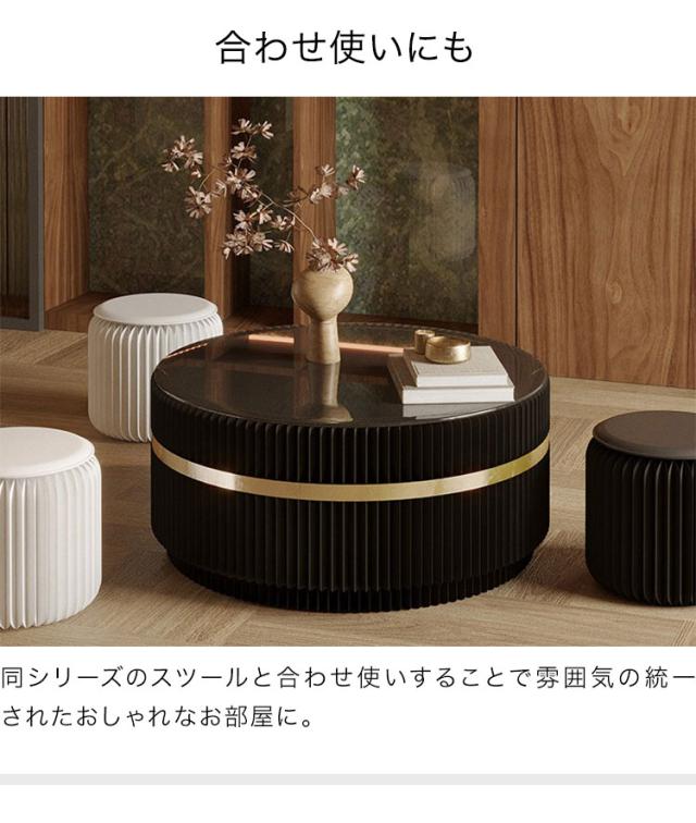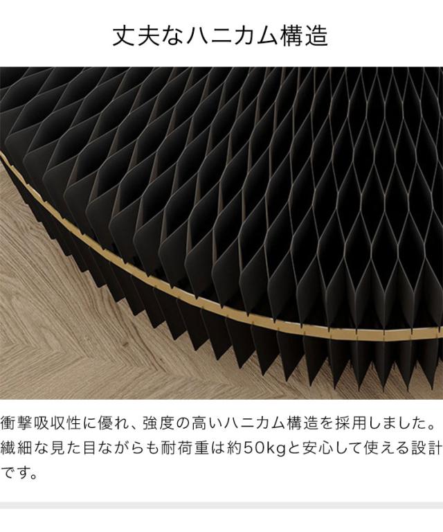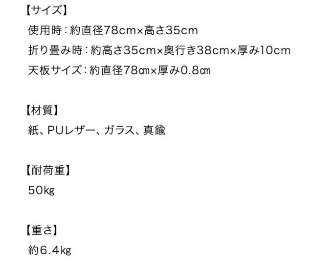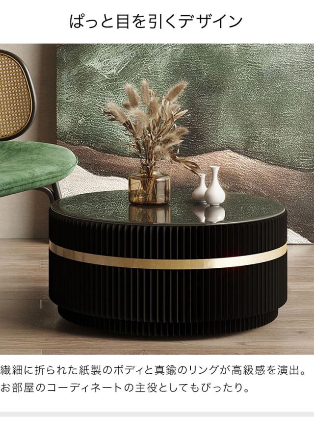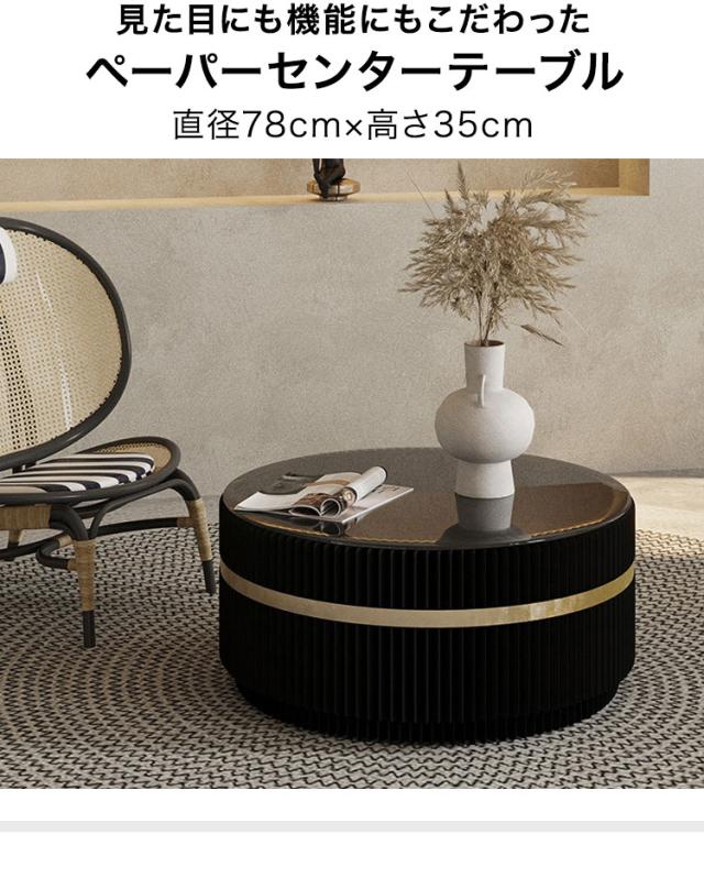 ペーパーセンターテーブル 折りたたみ 幅78cm 高さ35cm 円形 ガラス天板 紙製 ハニカム構造 耐荷重50kg 撥水加工 クラフト紙 ブラック おしゃれ 北欧 モダン 上品 高級感 紙テーブル 丸テーブル(代引不可)【送料無料】