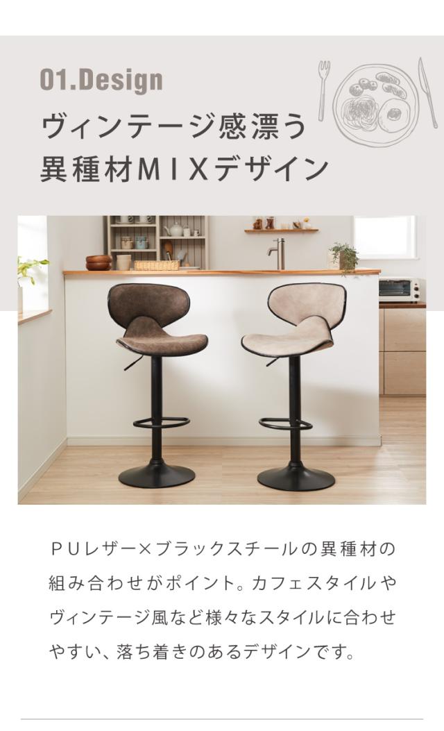 ヴィンテージモダン昇降式カウンターチェア/2脚セット