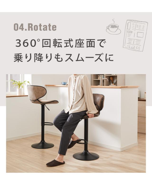 カウンターチェア 背もたれ付き ガス式昇降 360°回転式 昇降式 モダン ヴィンテージ おしゃれ 北欧 バーチェア ハイスツール チェア イス スツール 椅子 カフェ キッチン【送料無料】