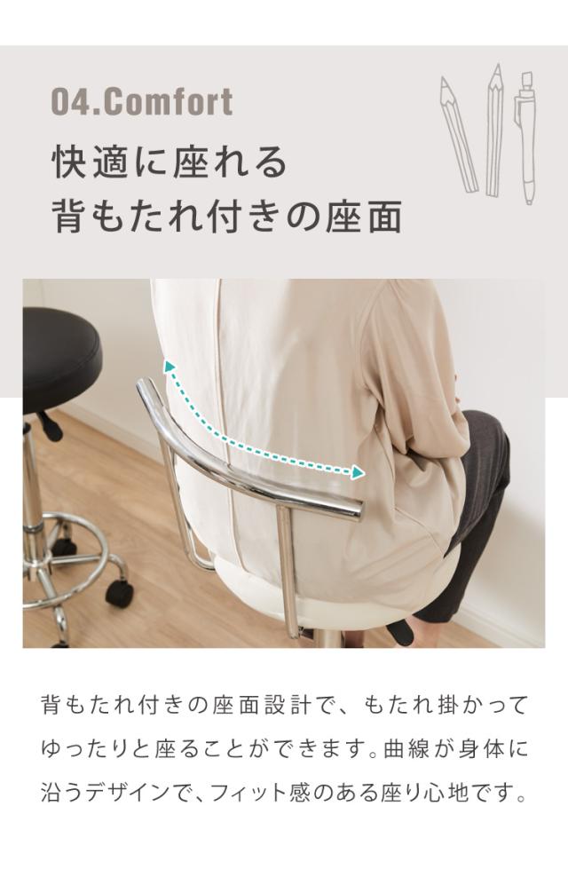 ・背もたれ付きで長時間座っても疲れにくいデザインです。