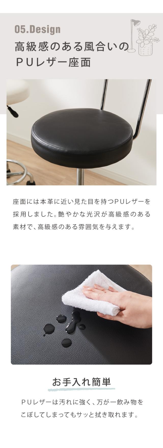 ・座面はなめらかな肌触りでお手入れも簡単なPU素材です。