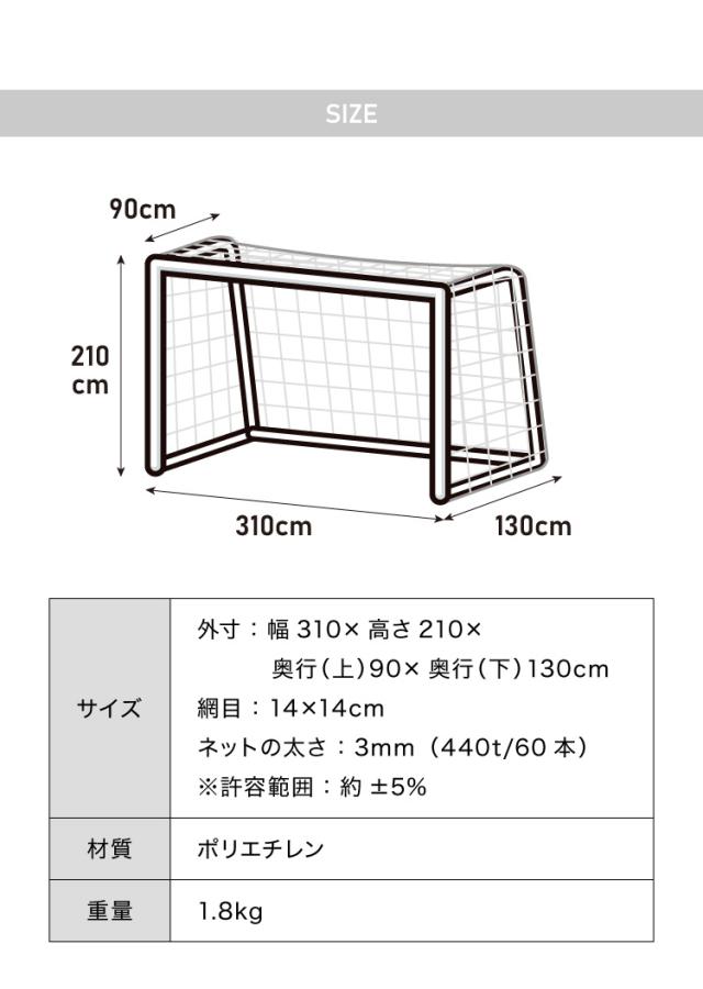 フットサル公式サイズ/310×210cm | 少年サッカー推奨サイズ/510×220cm | 一般用公式サイズ/744×256cm |
