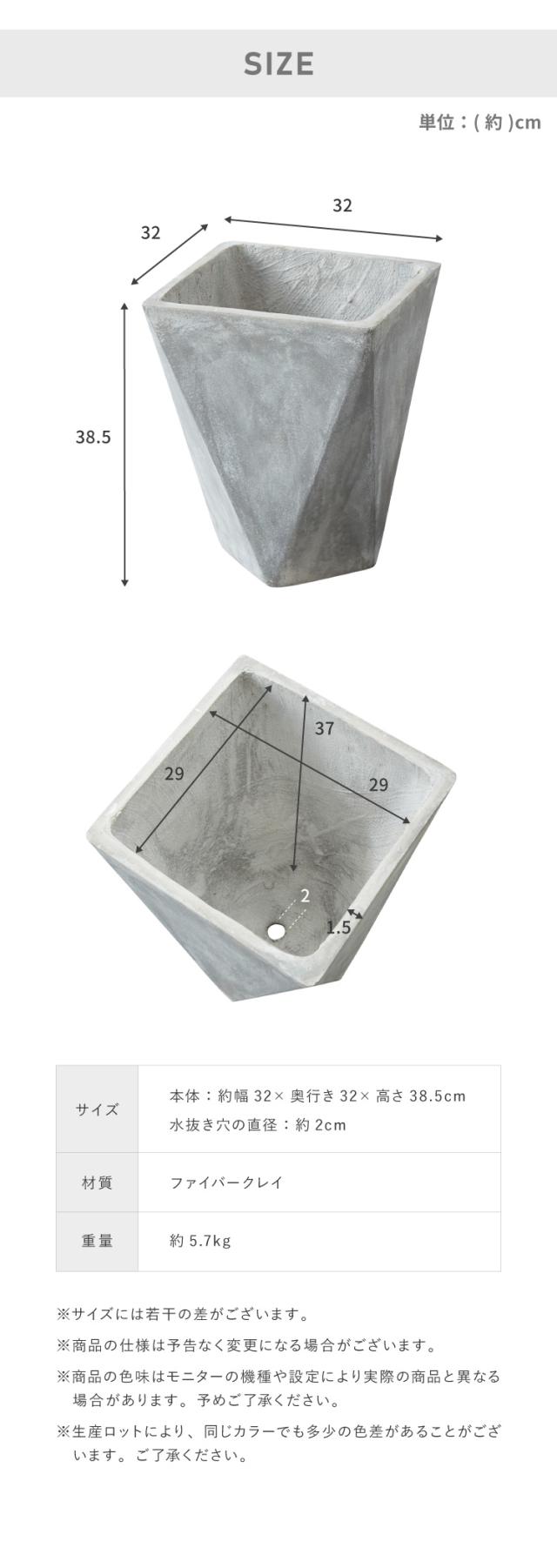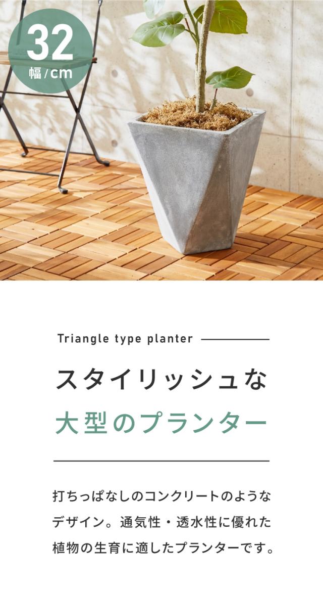 プランター 大型 32cm×32cm 三角形 シャープ コンクリート ファイバークレイ 軽量 おしゃれ モダン 打ちっぱなし テーパー型 ポリゴン ガーデニング 植木鉢 鉢植え 大型プランター(代引不可)【送料無料】