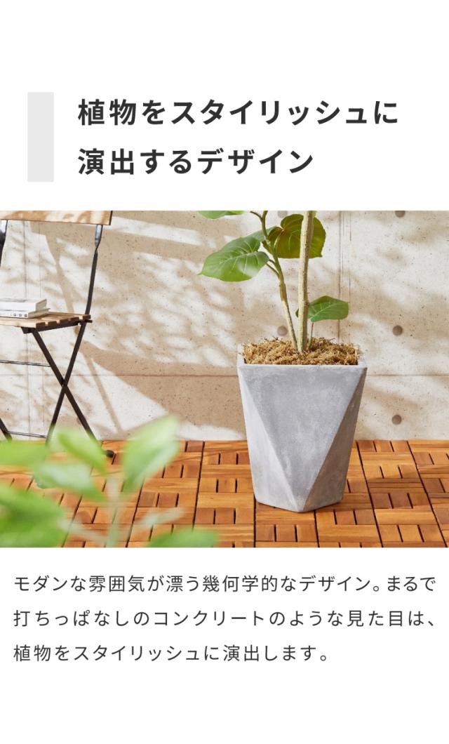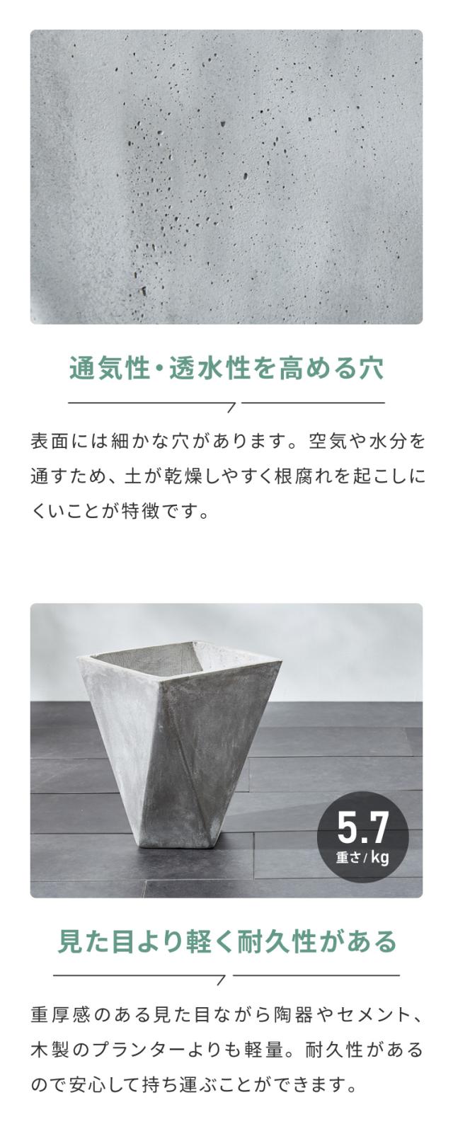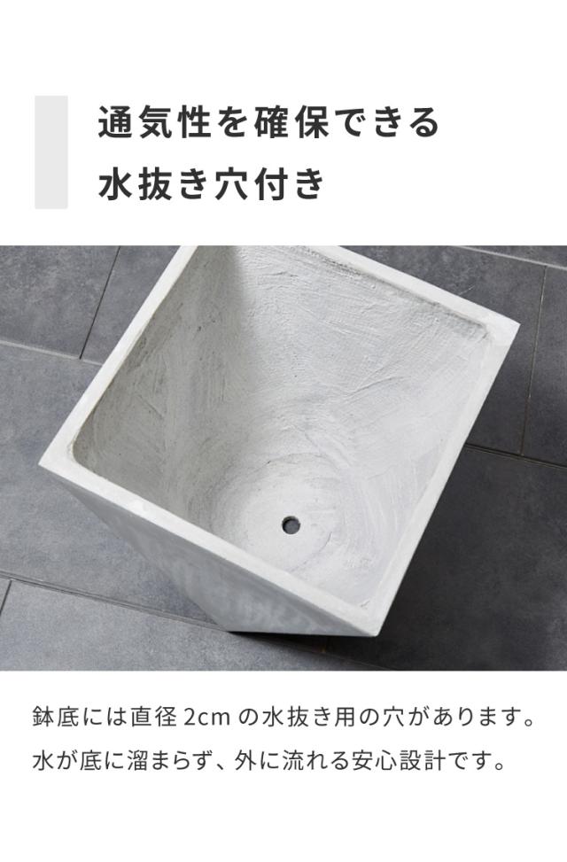 コンクリート調プランター、モダンデザイン、カフェ、花屋、什器、商業施設、オフィス、玄関、テラス、ベランダ、ガーデンインテリア、ガーデン雑貨、丈夫、鉢底穴、根腐れ防止、打ちっぱなし風