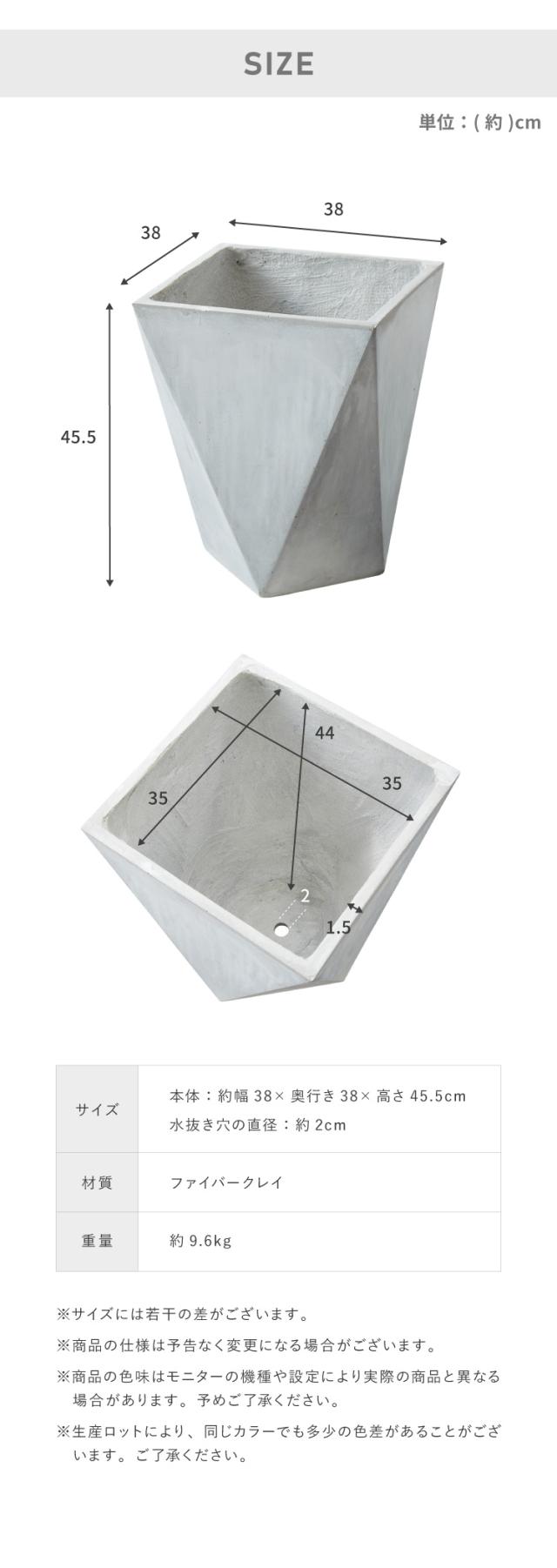 プランター 大型 38cm×38cm 三角形 シャープ コンクリート ファイバークレイ 軽量 おしゃれ モダン 打ちっぱなし テーパー型 ポリゴン ガーデニング 植木鉢 鉢植え 大型プランター(代引不可)【送料無料】
