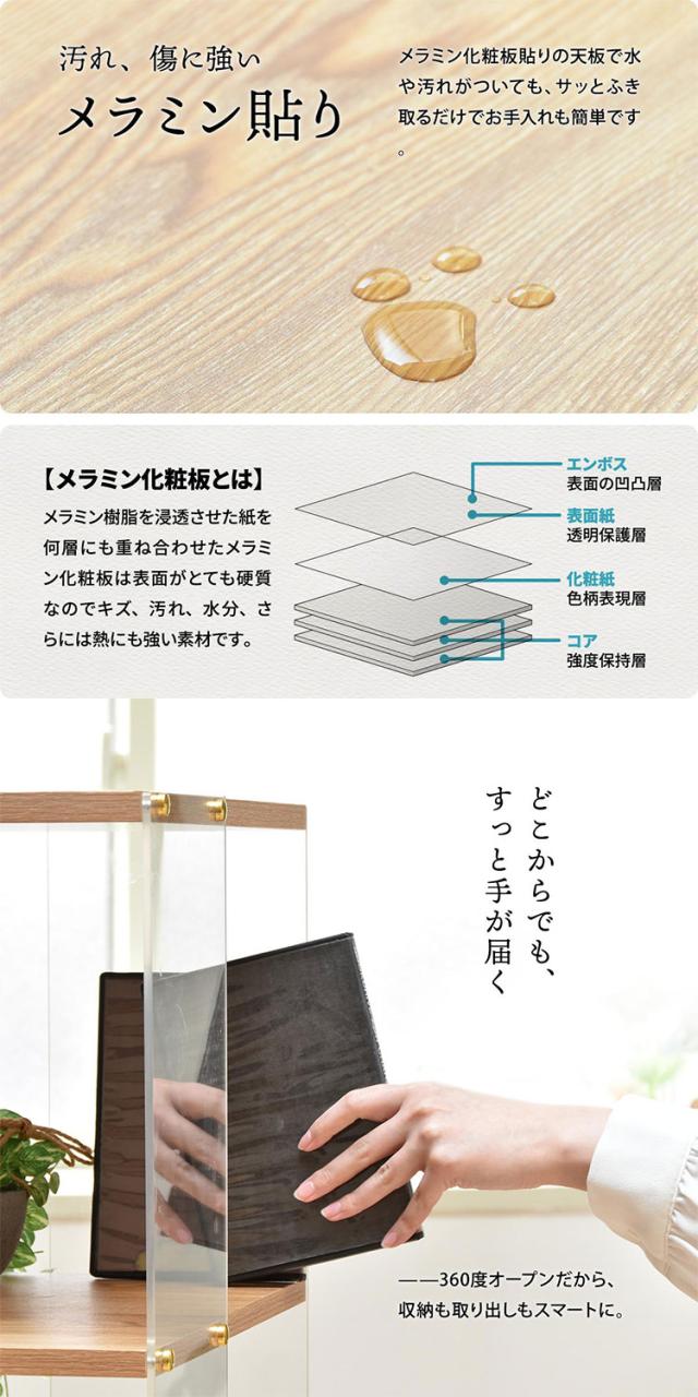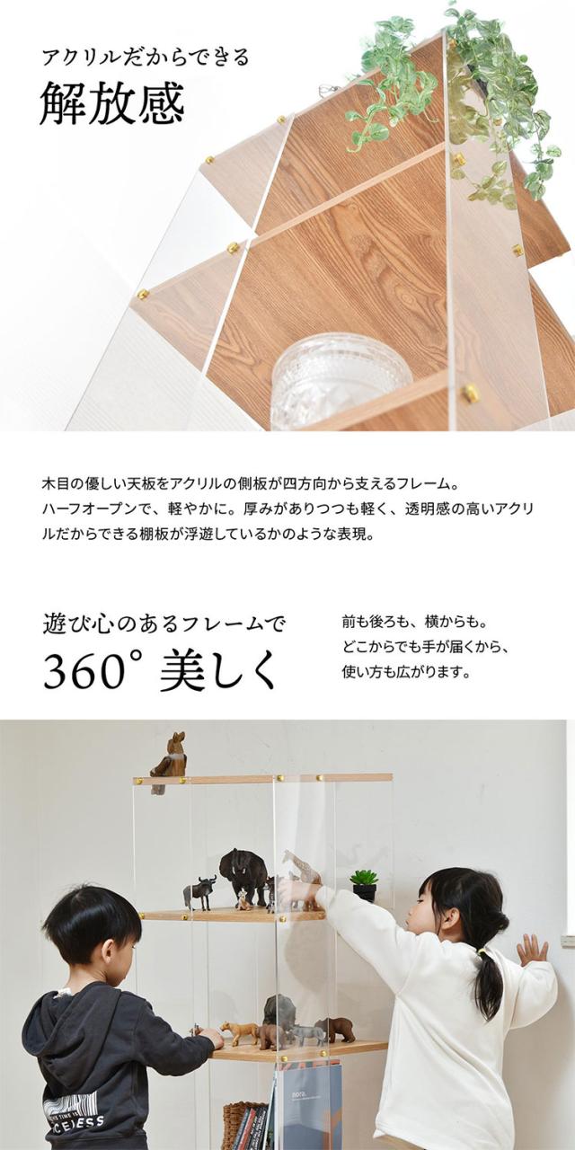■素材:【フレーム】アクリル4.5mm 【棚板】中質繊維板にメラミン貼り15mm