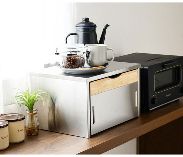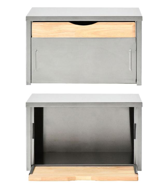 パンやコーヒーなどを収納できるステンレス製のブレッドケース。
