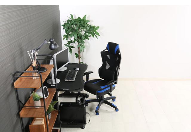メッシュゲーミングチェア レイズ ブルー 昇降式 回転式 リクライニング 椅子 イス アームレスト かっこいい おしゃれ リモートワーク 在宅勤務 在宅ワーク(代引不可)【送料無料】