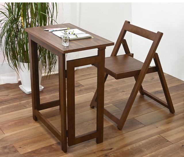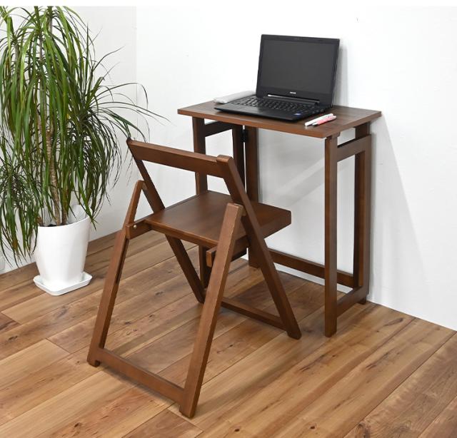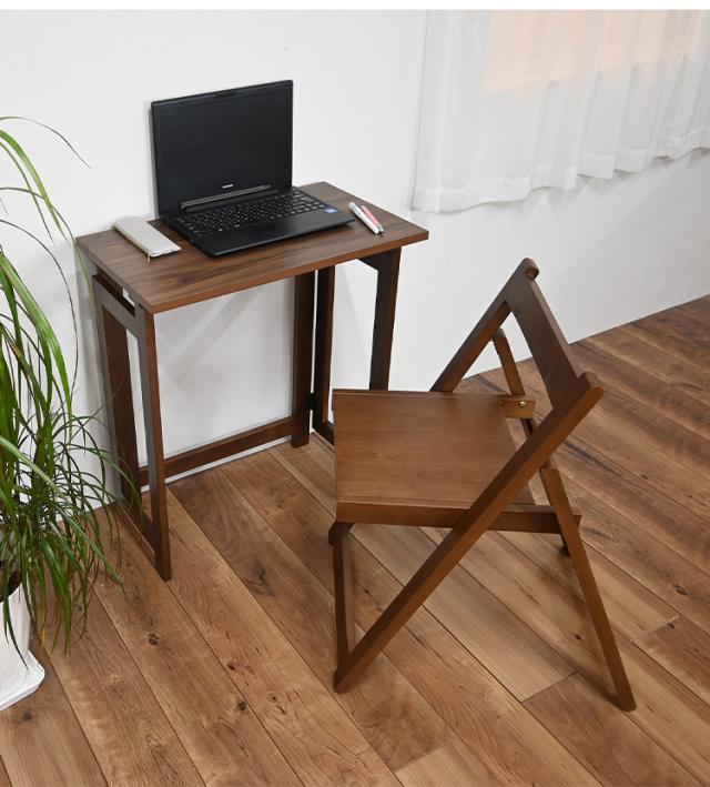 【デスクチェアセット セット】 作業デスク 作業机 作業チェア 作業椅子 折り畳み 折りたたみ 収納らくらく 簡単収納 ブラウン 寝室 リビング デスクワーク 在宅ワーク リモート リモートワ
