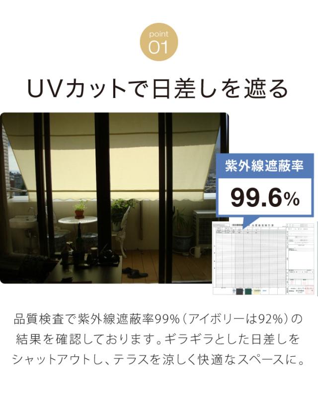 強い日差しや視線をカット。つっぱり式で、デッキやベランダにも簡単に設置可能です。