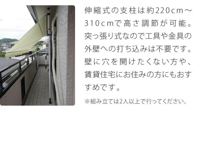 伸縮式つっぱり棒は約220〜310cmまで高さ調節可能。