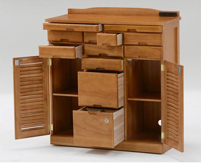 天然木 桐製 鍵付き多段チェスト FAX台 コンセント付き 幅76cm ファックス台 多段 チェスト 引き出しいっぱいFAX台 引出し 収納 大容量 木製 鍵付きチェスト(代引不可)【送料無料】