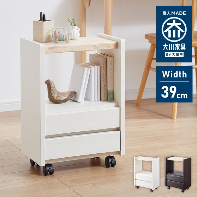 職人が作るラック付きチェスト キャスター付き 日本製 完成品 引き出し ワゴン リビングチェスト 大川家具 棚 ラック サカイデザイン Sakai Design 幅39cm 39cm幅 デスクワゴン サイドテーブル(代
