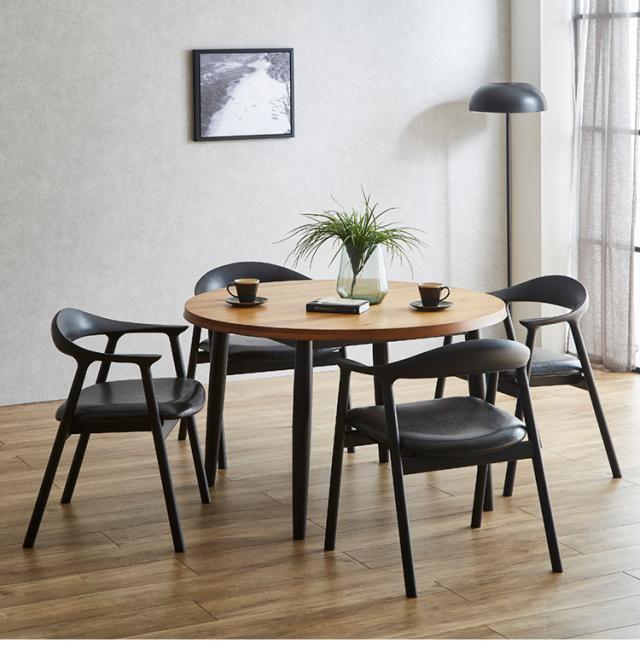 天然オーク材無垢仕様の一枚板風110円卓テーブル