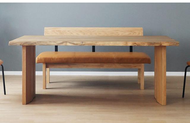 幅150cmでオーク素材、本革を使用したベンチです。背は天然杢突板で高級感のある仕上がりになっております。