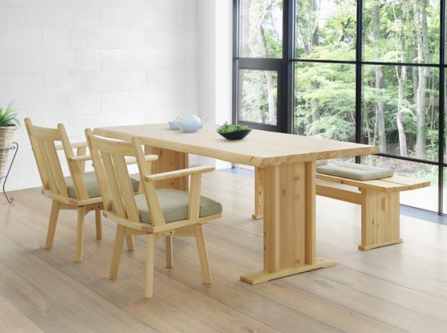 国産ヒノキ無垢材を使用したリビングダイニングセットです。高さは少し低めの設定になっております。