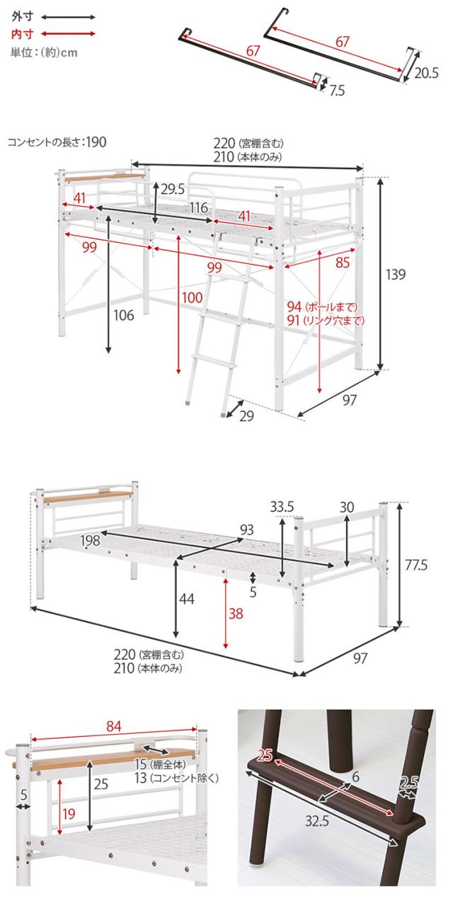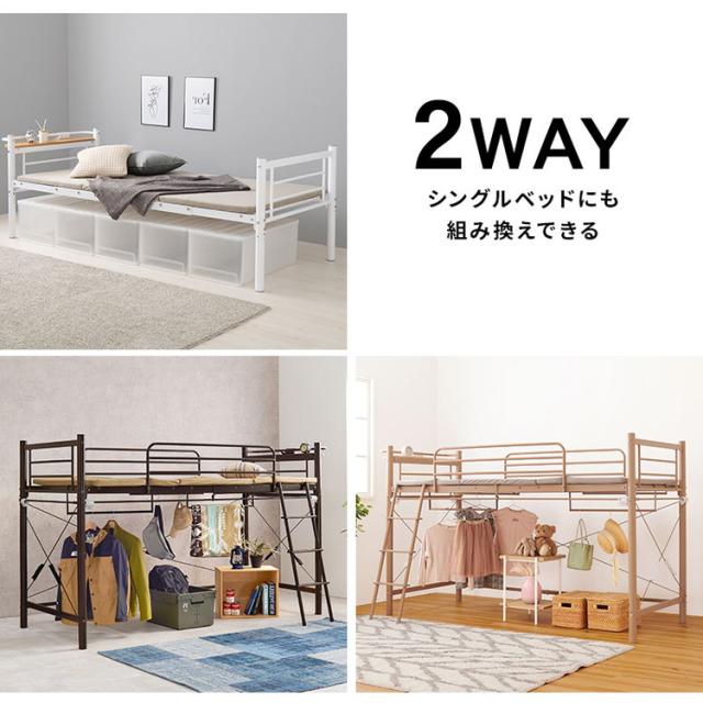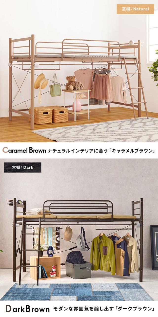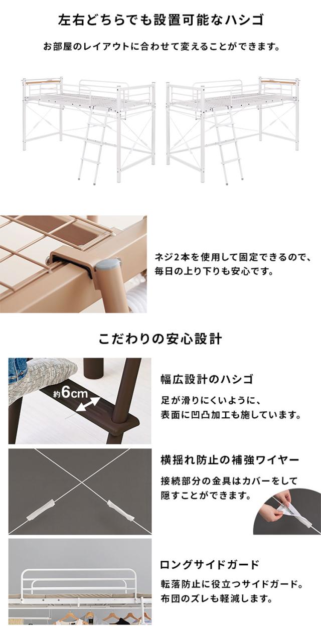 ロフトベッド 高さ139cm 棚コンセント付き シングル ロータイプ 耐荷重100kg システムベッド 収納 ハンガー パイプベッド 宮棚付き ベッドフレーム はしご 一人暮らし(代引不可)【送料無料】