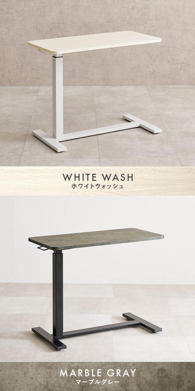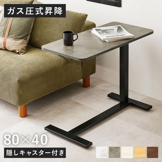 昇降式 サイドテーブル 隠しキャスター付き ガス圧昇降 高さ調節 80×40cm コの字 サイドテーブル ベッドテーブル 机 ソファテーブル リフティングテーブル 木目調 大理石調(代引不可)【送料