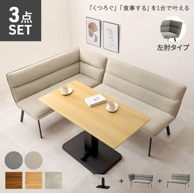 ソファダイニング3点セット 左肘タイプ ダイニングソファ+昇降式テーブル ダイニングテーブル ダイニングソファ 昇降テーブル ダイニングテーブル ソファダイニング(代引不可)【送料無料