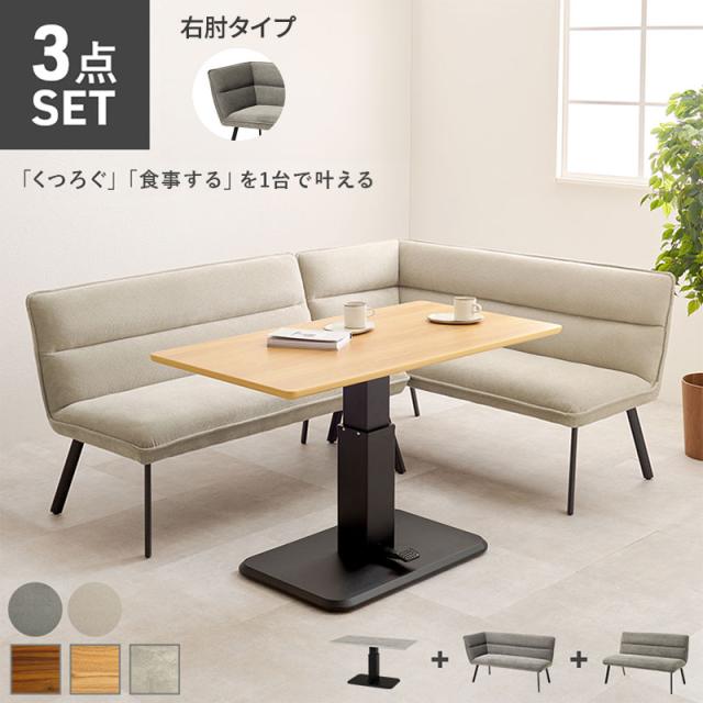 ソファダイニング3点セット 右肘タイプ ダイニングソファ+昇降式テーブル ダイニングテーブル ダイニングソファ 昇降テーブル ダイニングテーブル ソファダイニング(代引不可)【送料無料