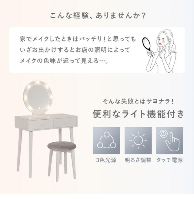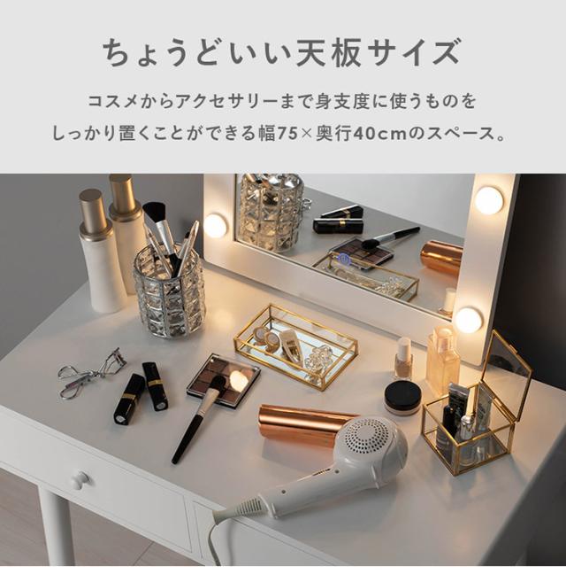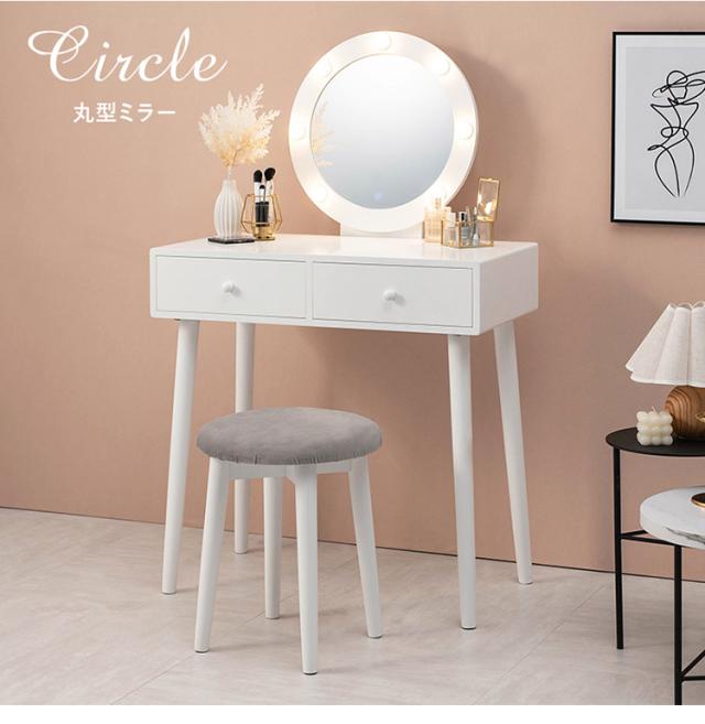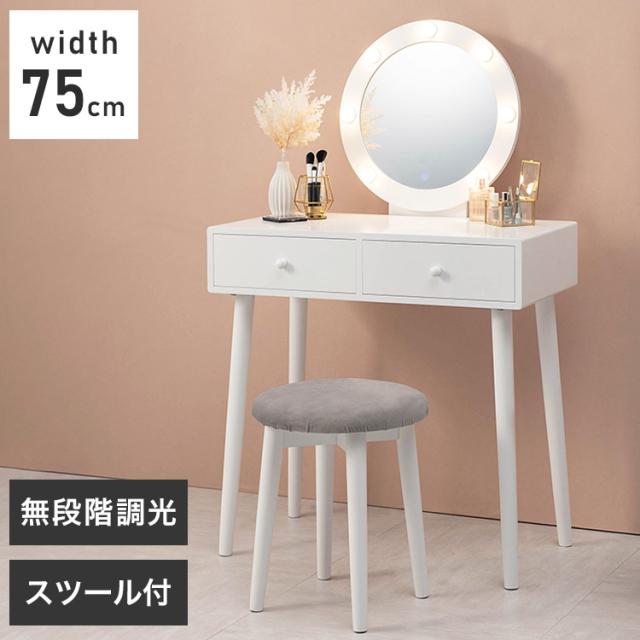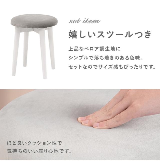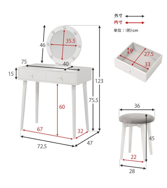ドレッサー:(約)幅75×奥行47×高さ123×天板高75.5cm、スツール:(約)幅36×奥行36×高さ45cm