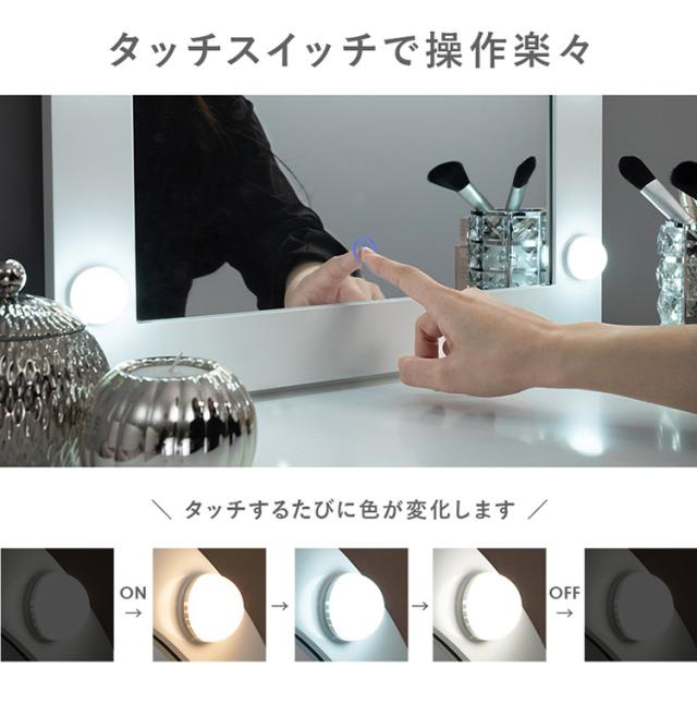 LEDライト付き 女優ドレッサー スツールセット 3色ライト 照明 丸型 ミラー 鏡 メイク 白 ホワイト おしゃれ かわいい 可愛い(代引不可)【送料無料】