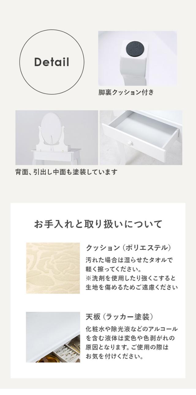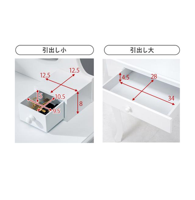 ドレッサー:(約)幅70×奥行42×高さ130cm、スツール:(約)幅37×奥行28×高さ45cm
