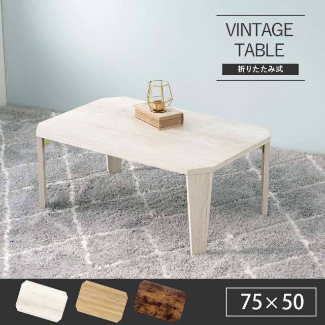 折りたたみテーブル センターテーブル 75×50cm ヴィンテージ古木調 モダン 北欧 おしゃれ 折りたたみ 収納 コンパクト 省スペース 折りたたみ 折れ脚テーブル テーブル 机 ローテーブル 一人暮らし 新生活 (代引不可)【送料無料】